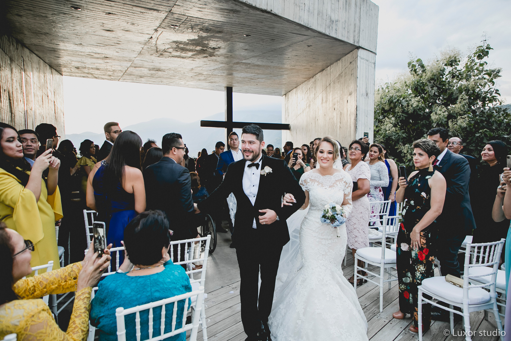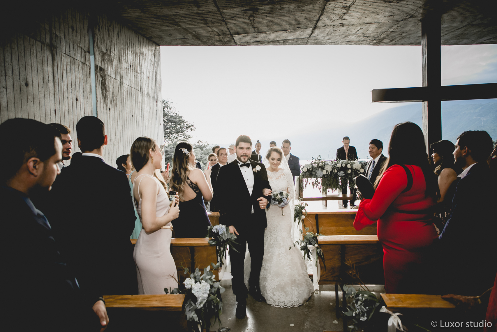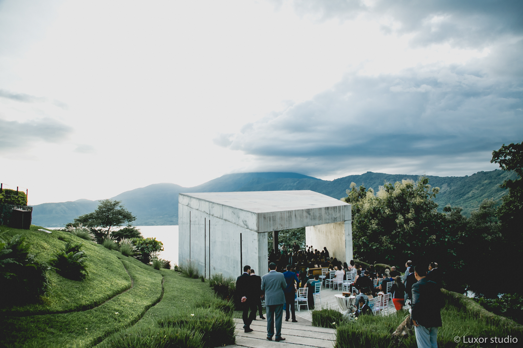 Llena de vistas panorámicas y cielos coloridos, la boda de Ivania y Obed junto al lago en Coatepeque nos hace soñar con paisajes de otro país. Situada de la orilla de lago, su ceremonia fue envuelta por rayos luminosos. Una paleta armoniosa apagada se filtraba a través de cada elemento de su decoración. Flores poéticas y velas dentro de piezas cristalinas marcan la pauta para una velada de cena y baile bajo cielos de zafiro, una boda de ensueño.