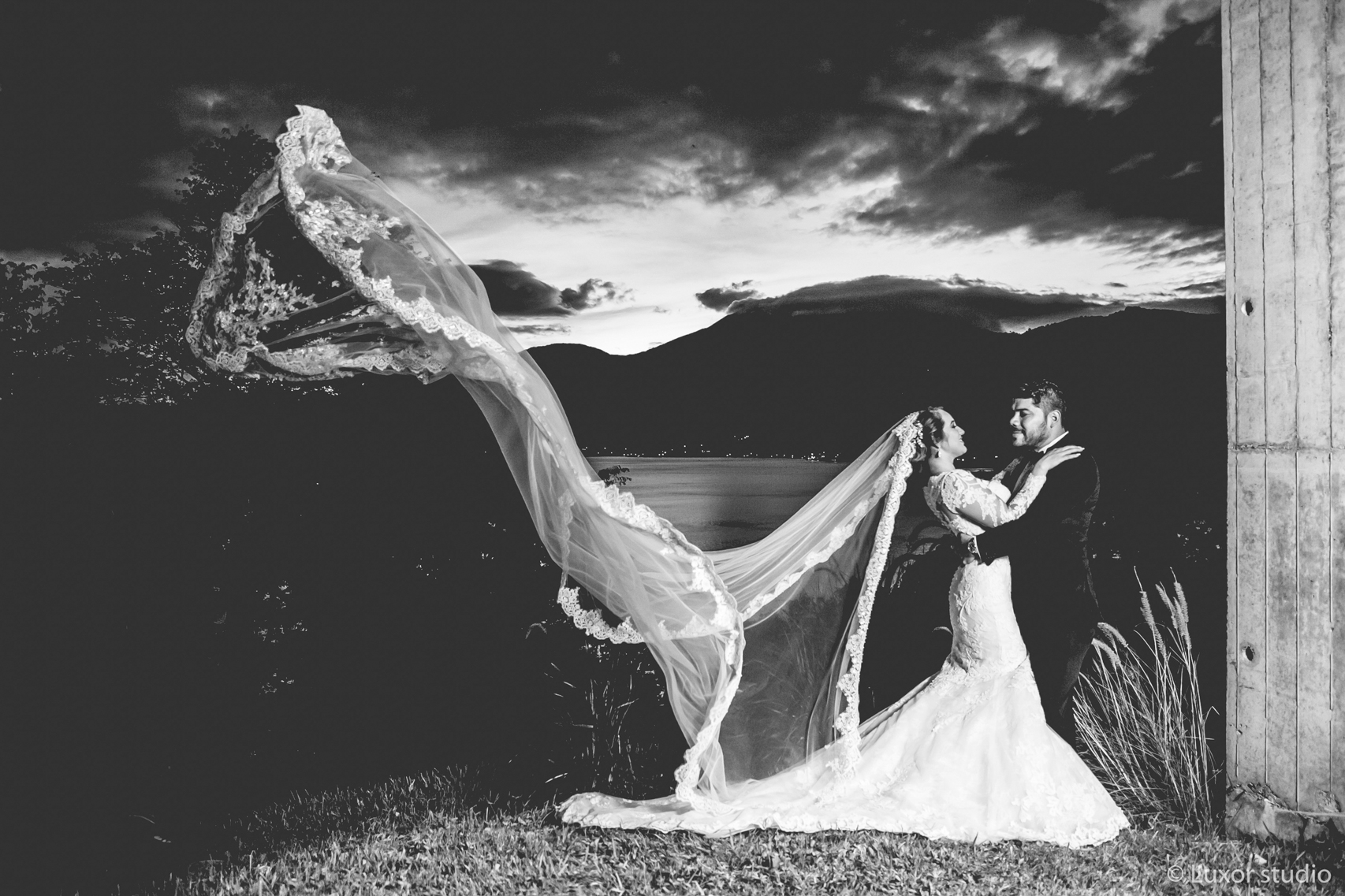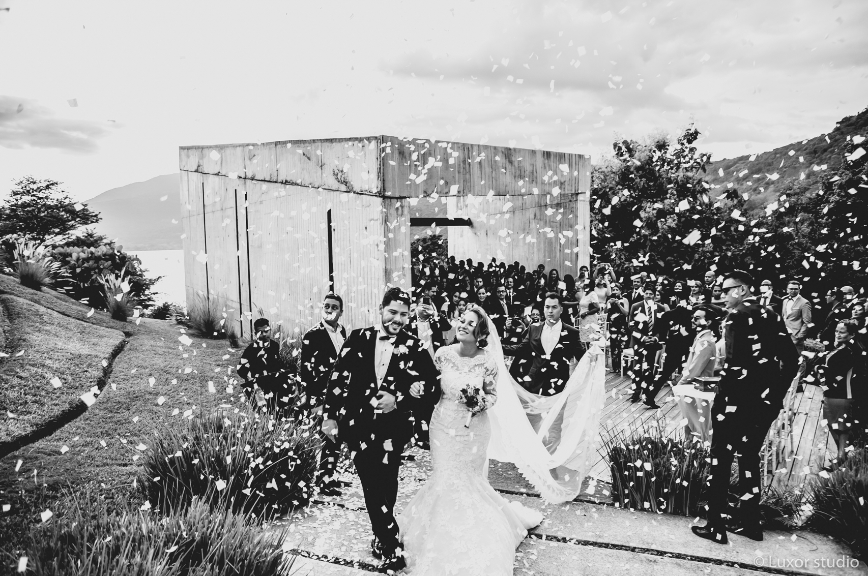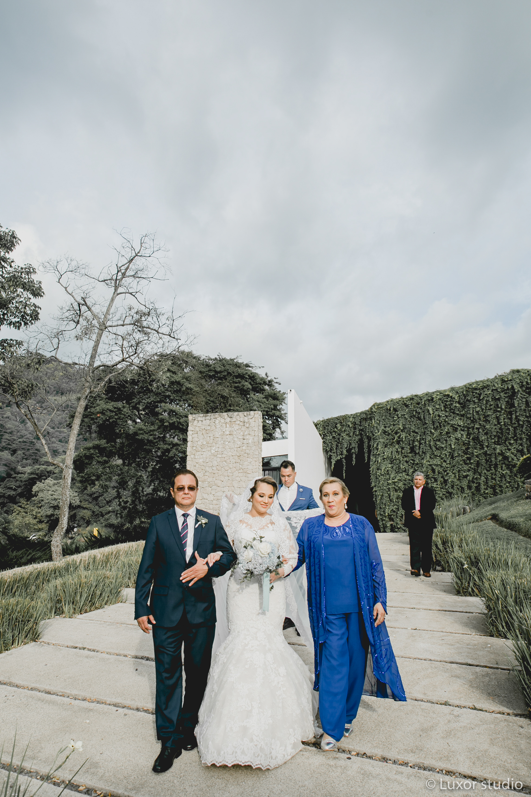 Llena de vistas panorámicas y cielos coloridos, la boda de Ivania y Obed junto al lago en Coatepeque nos hace soñar con paisajes de otro país. Situada de la orilla de lago, su ceremonia fue envuelta por rayos luminosos. Una paleta armoniosa apagada se filtraba a través de cada elemento de su decoración. Flores poéticas y velas dentro de piezas cristalinas marcan la pauta para una velada de cena y baile bajo cielos de zafiro, una boda de ensueño.