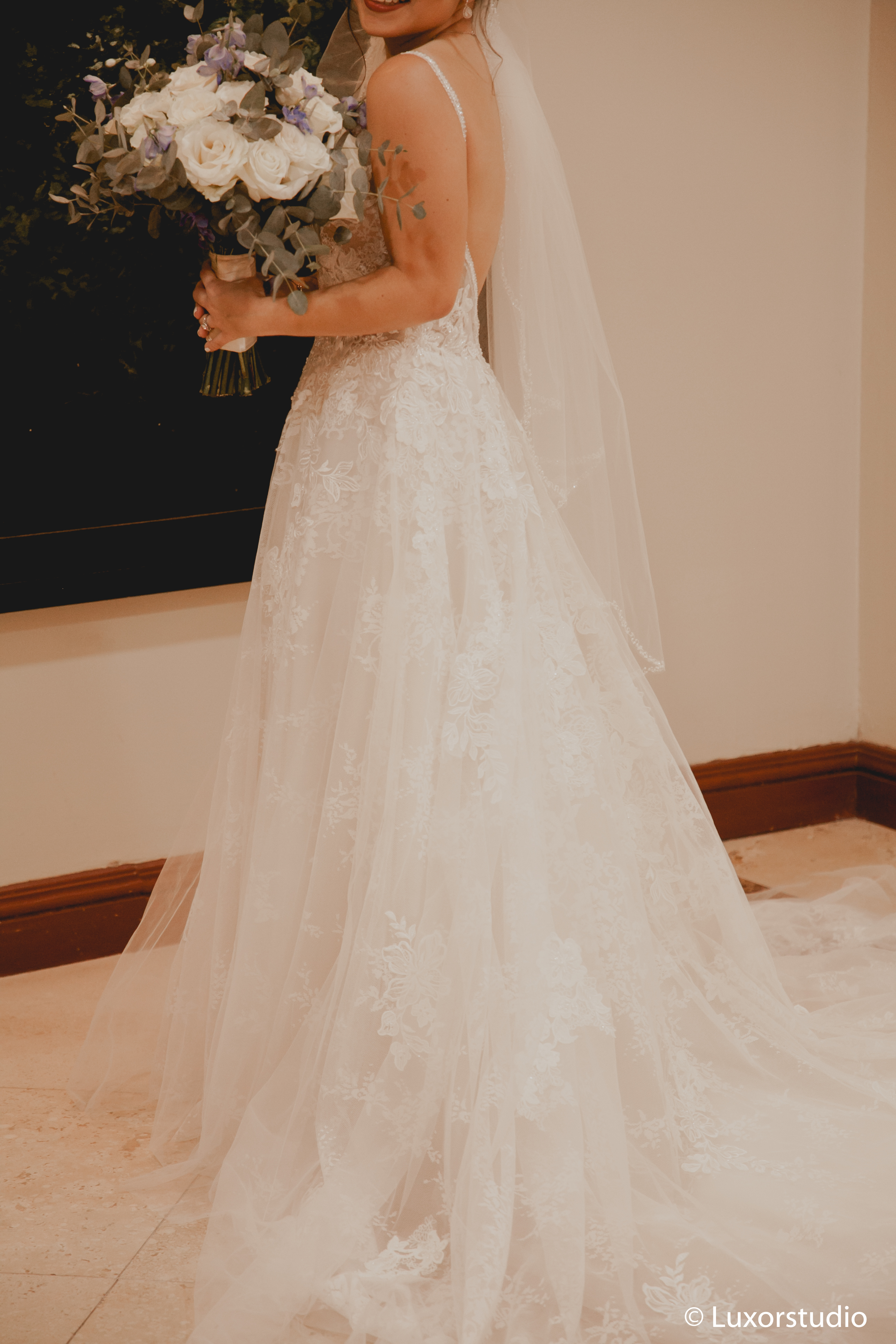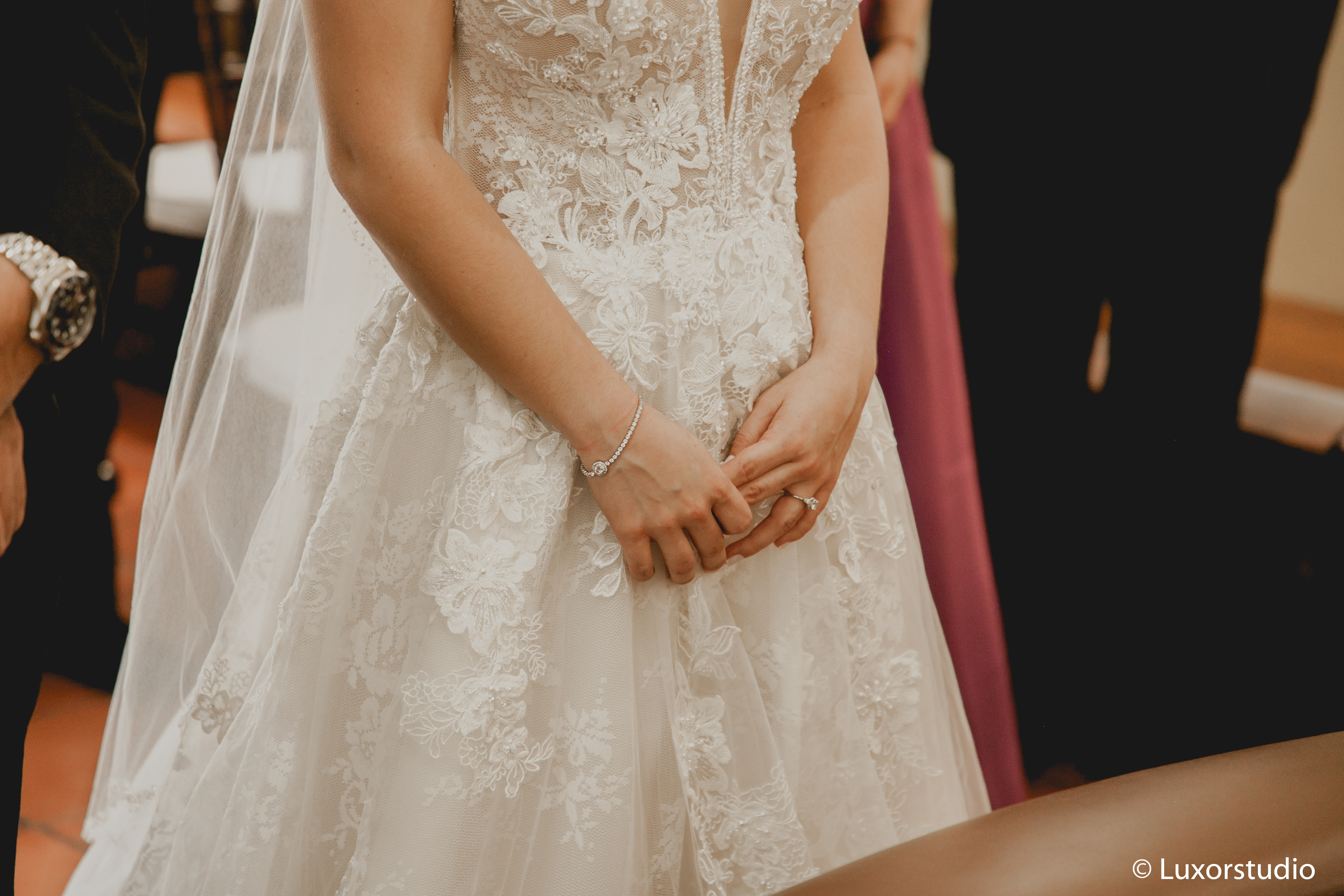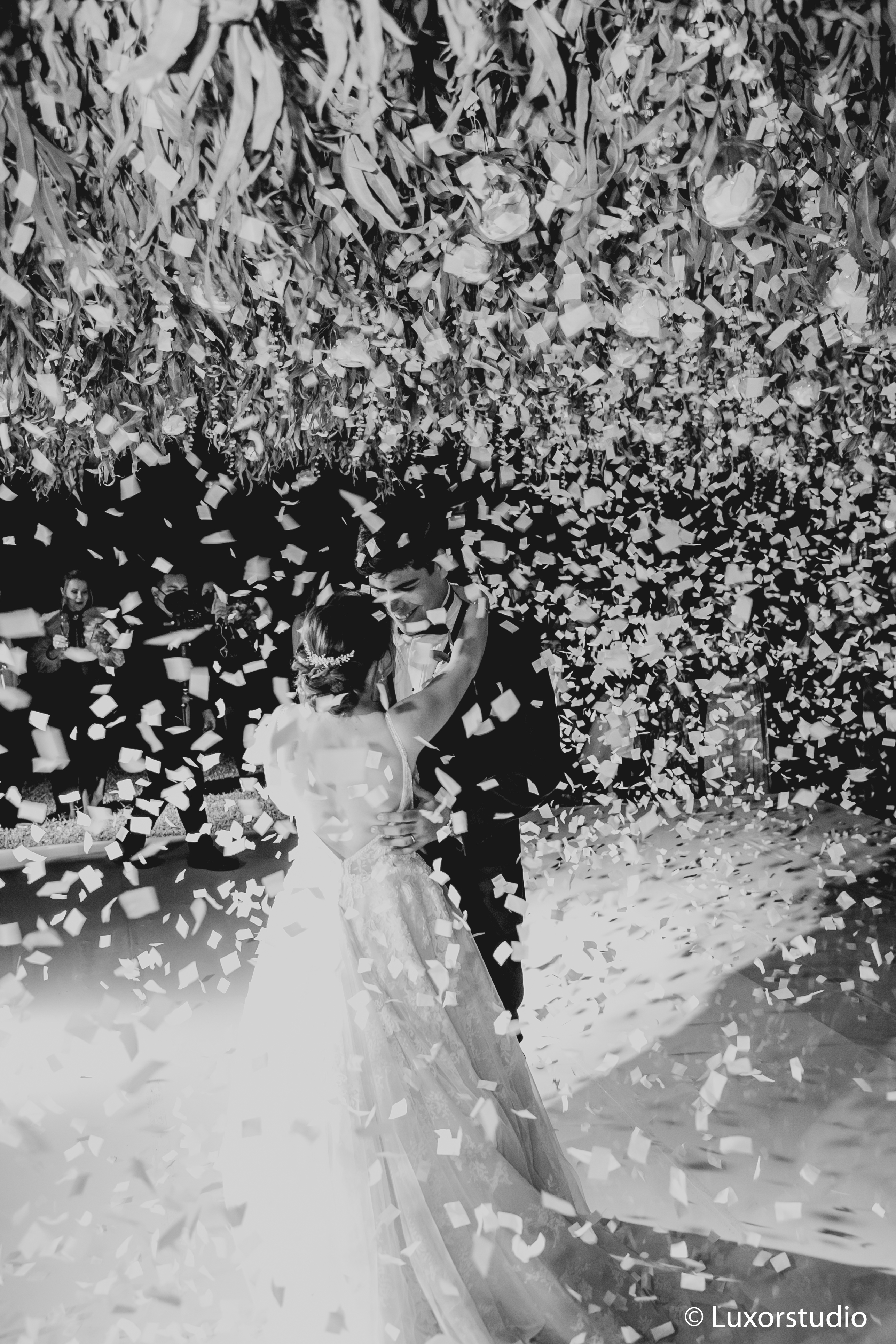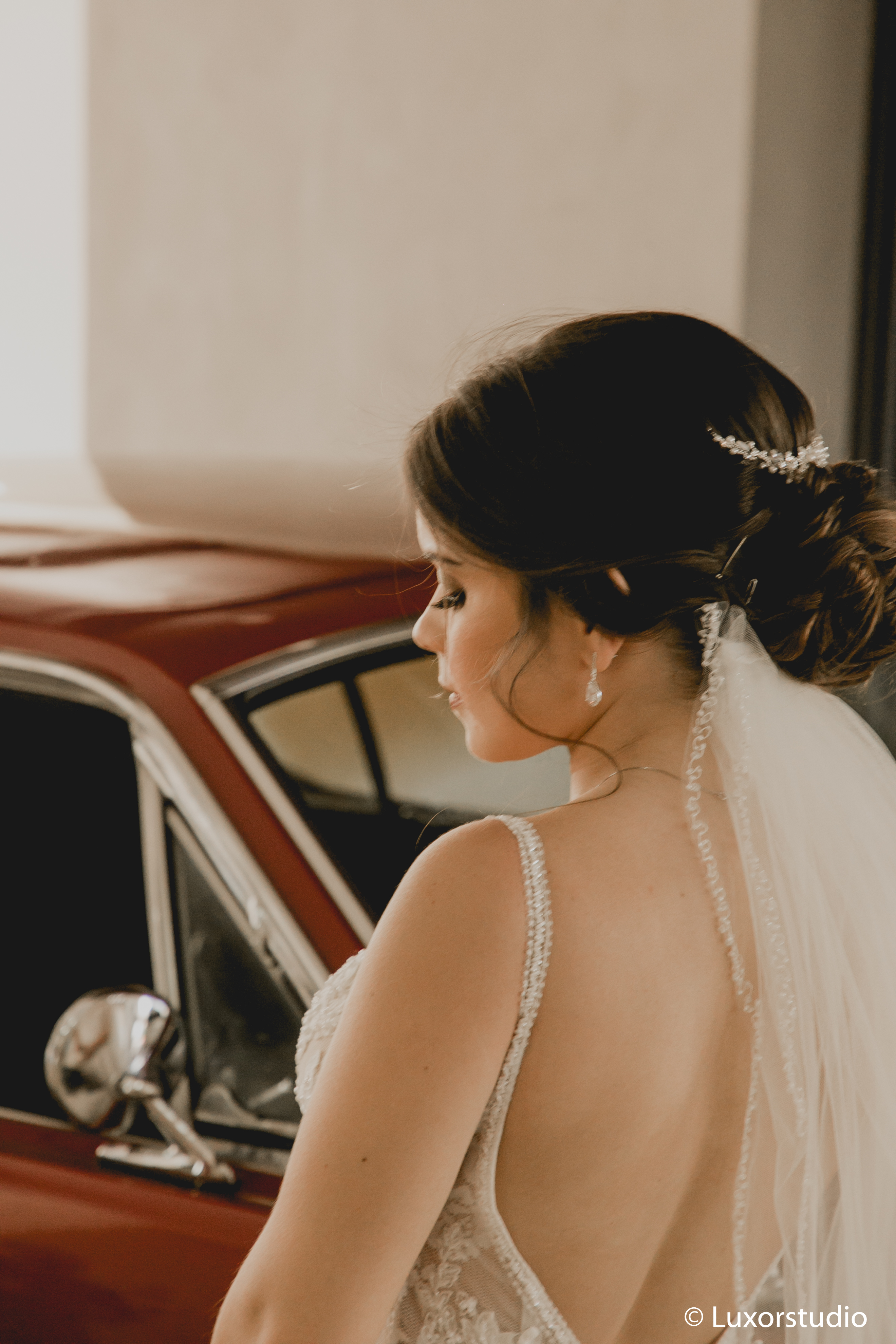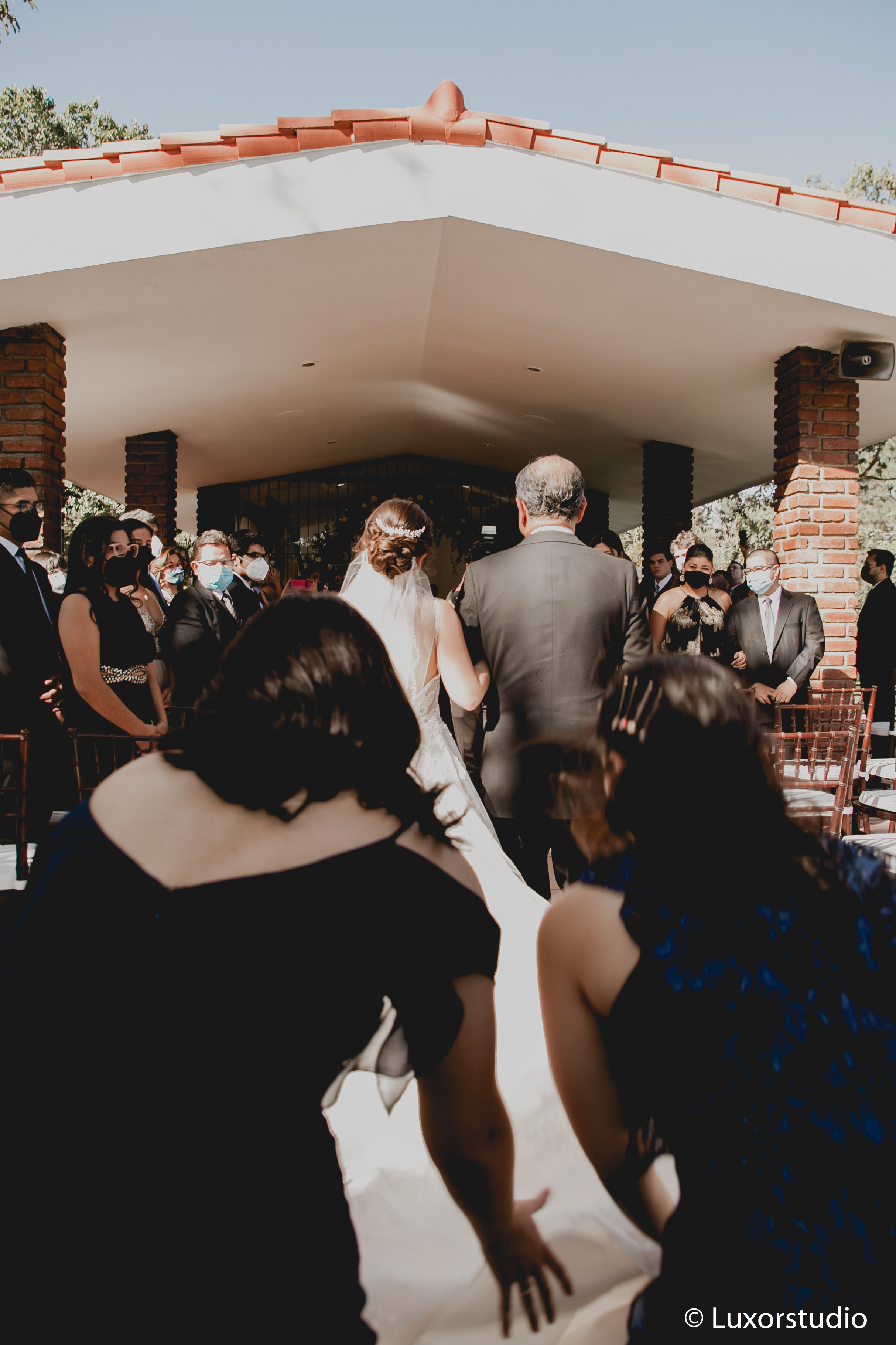 Ella llegó en un elegante auto color rojo, haciendo contraste con el blanco de su vestido. Luego del tan anhelado beso que reafirmaba su matrimonio, se dirigieron a la recepción.