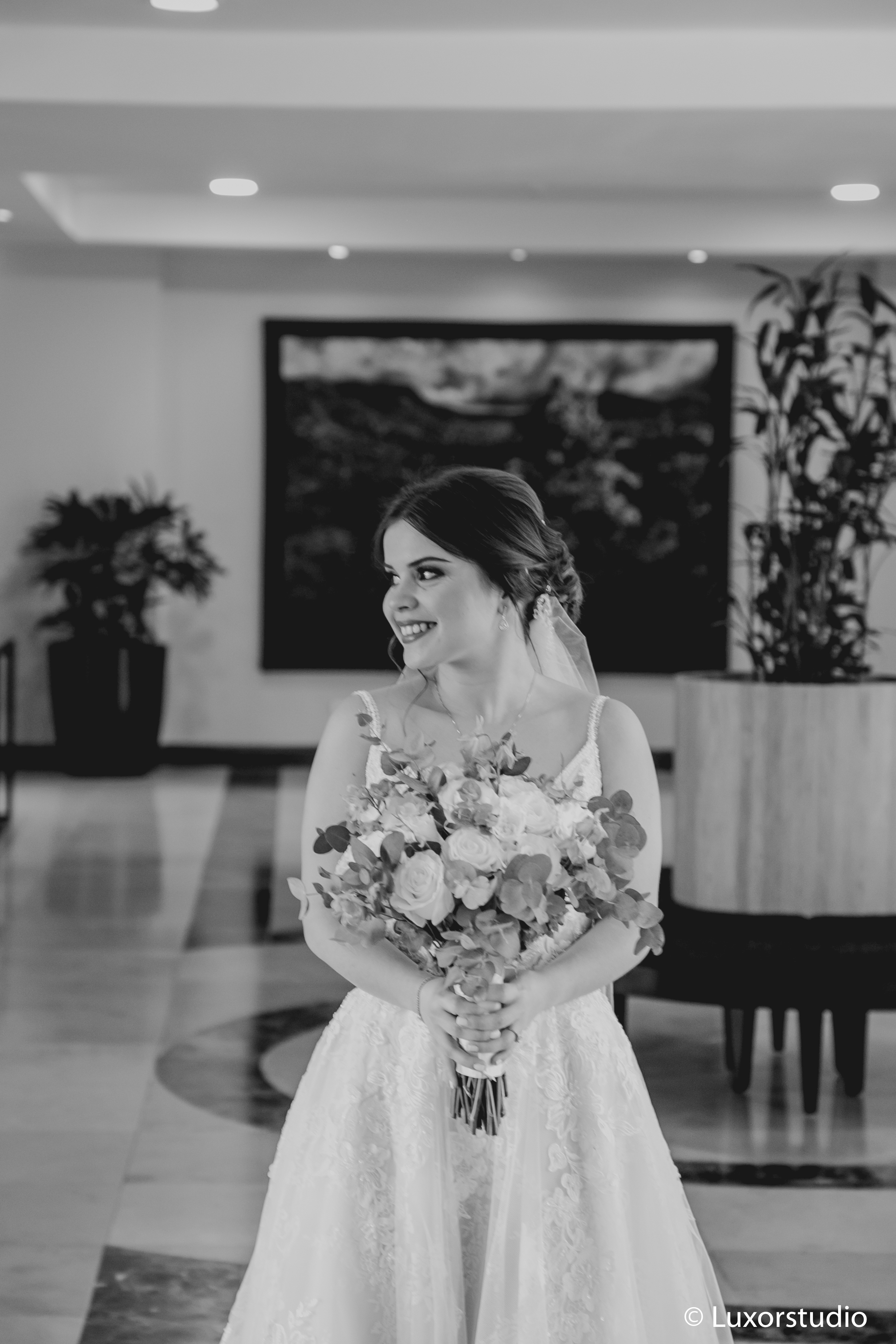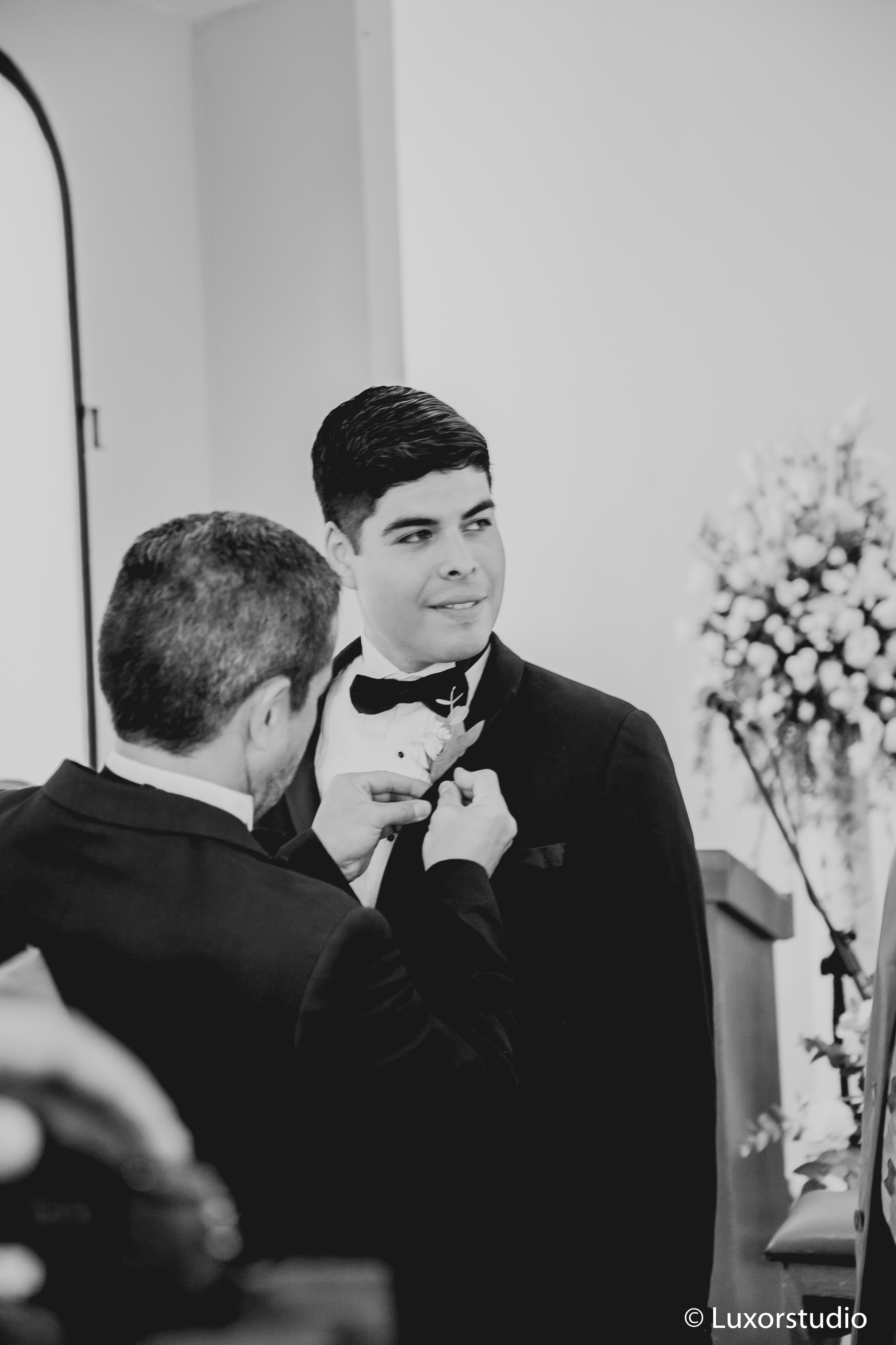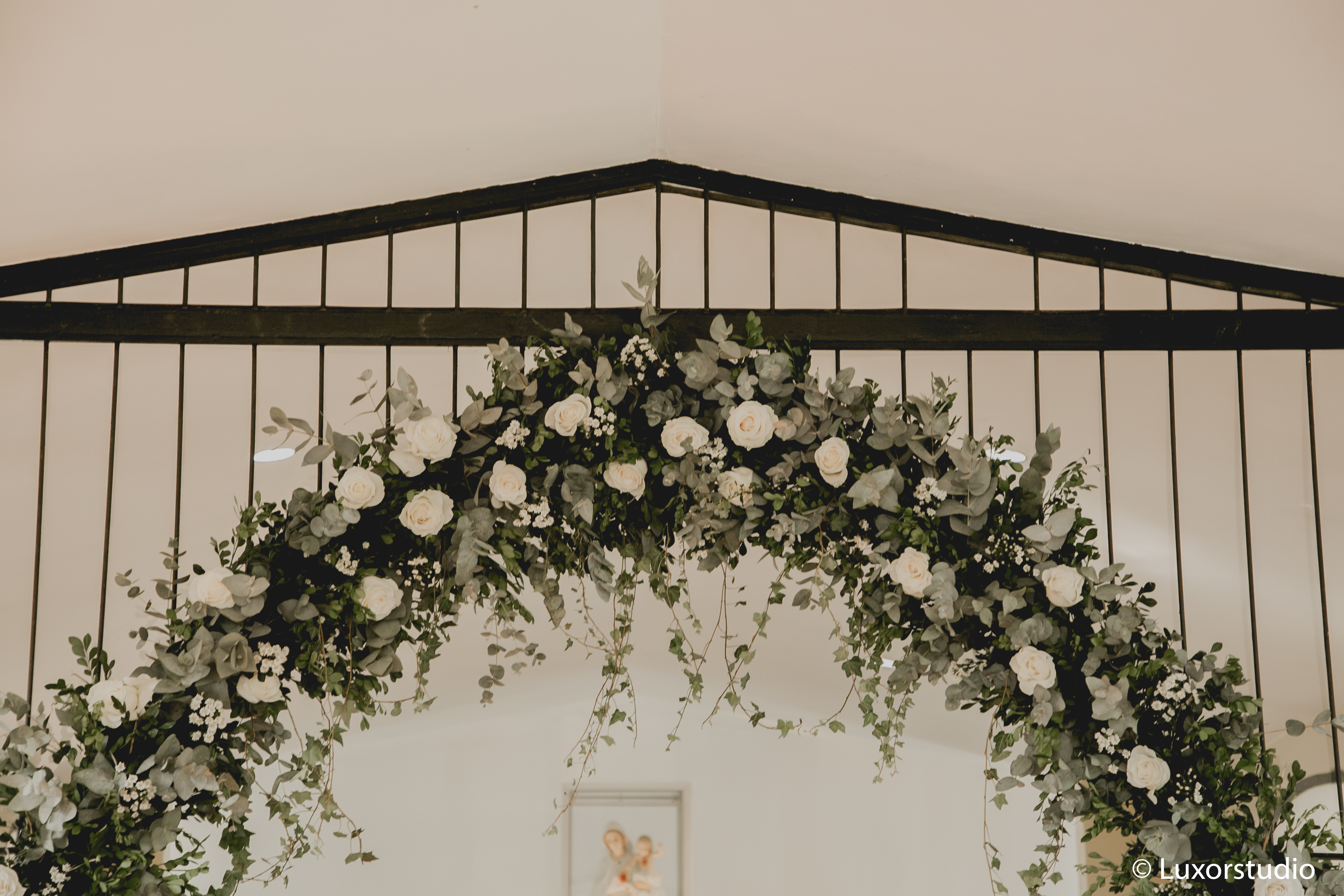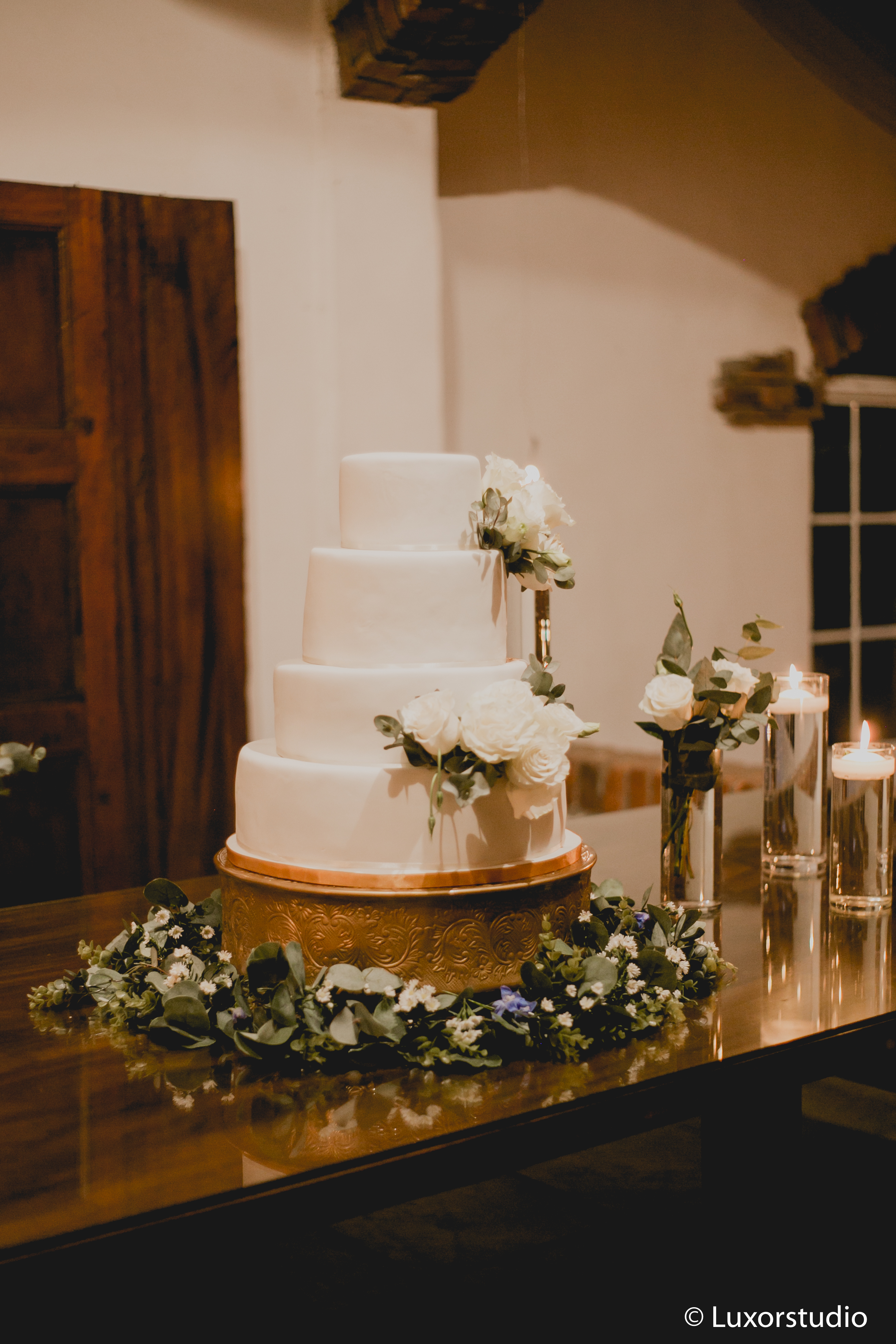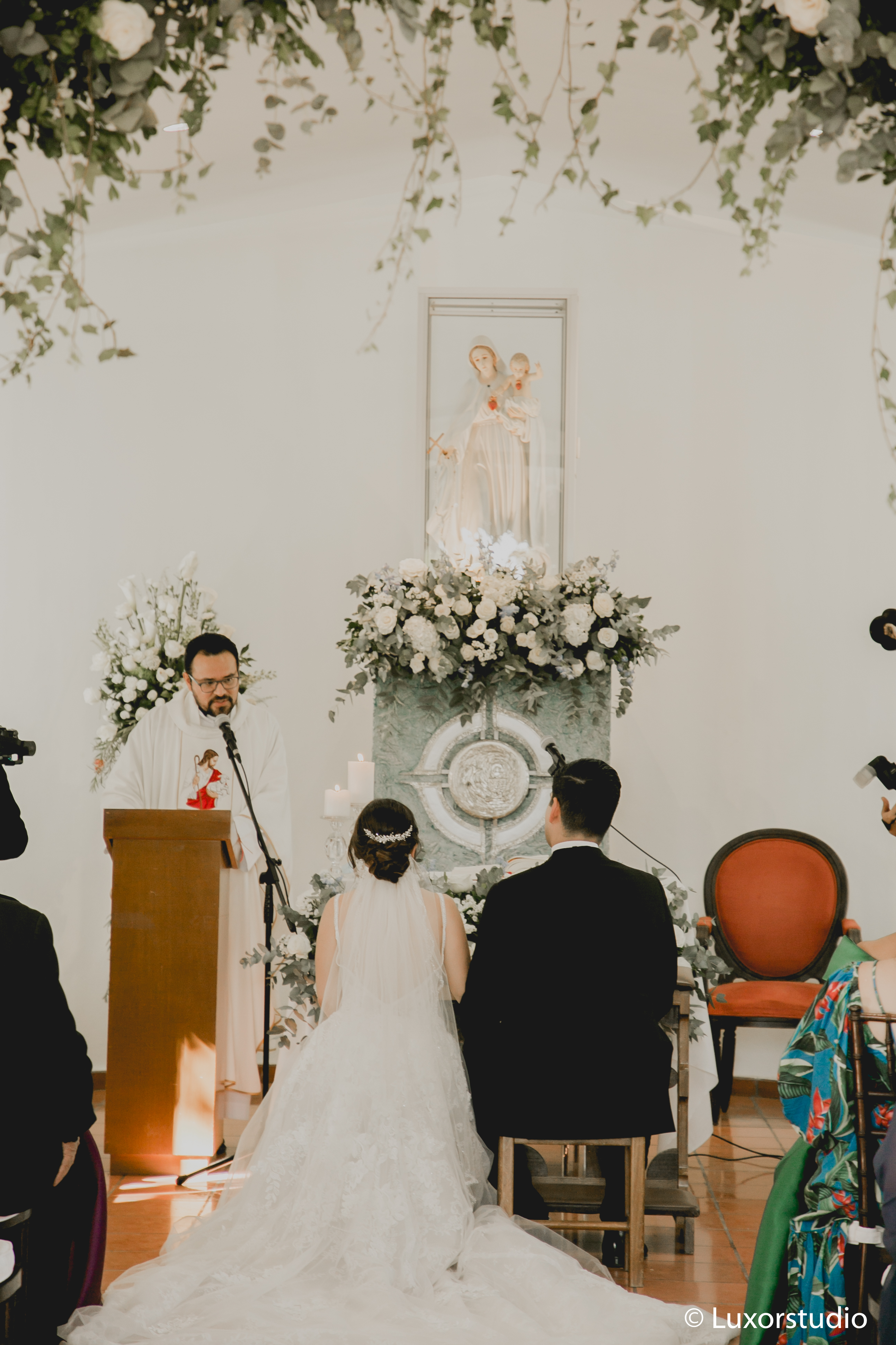 Los votos se intercambiaron en una capilla camino a Cajamarca y el ambiente se creó con una serie de arreglos de rosas blancas y follaje, dando un bonito concepto.