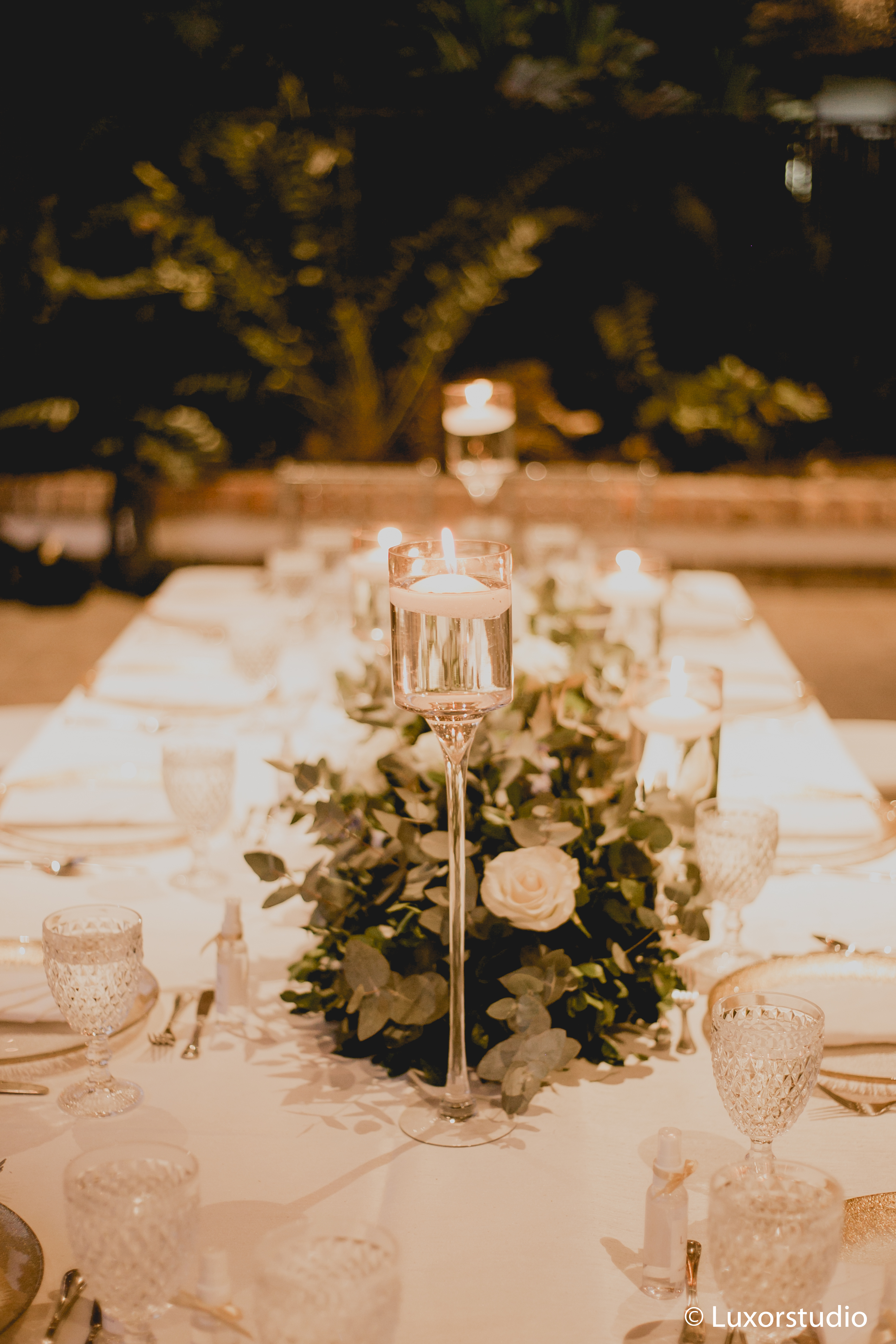 Desde los sutiles acentos florales en la mesa hasta los delicados detalles del vestido de Alejandra, la esencia de la naturaleza desempeñó un papel importante en su boda. Velas y pista de baile al aire libre hacen la fusión perfecta.