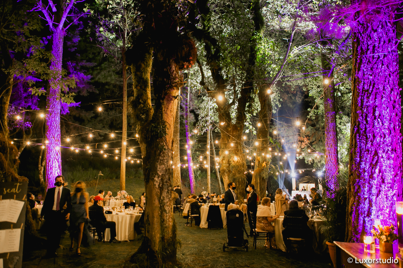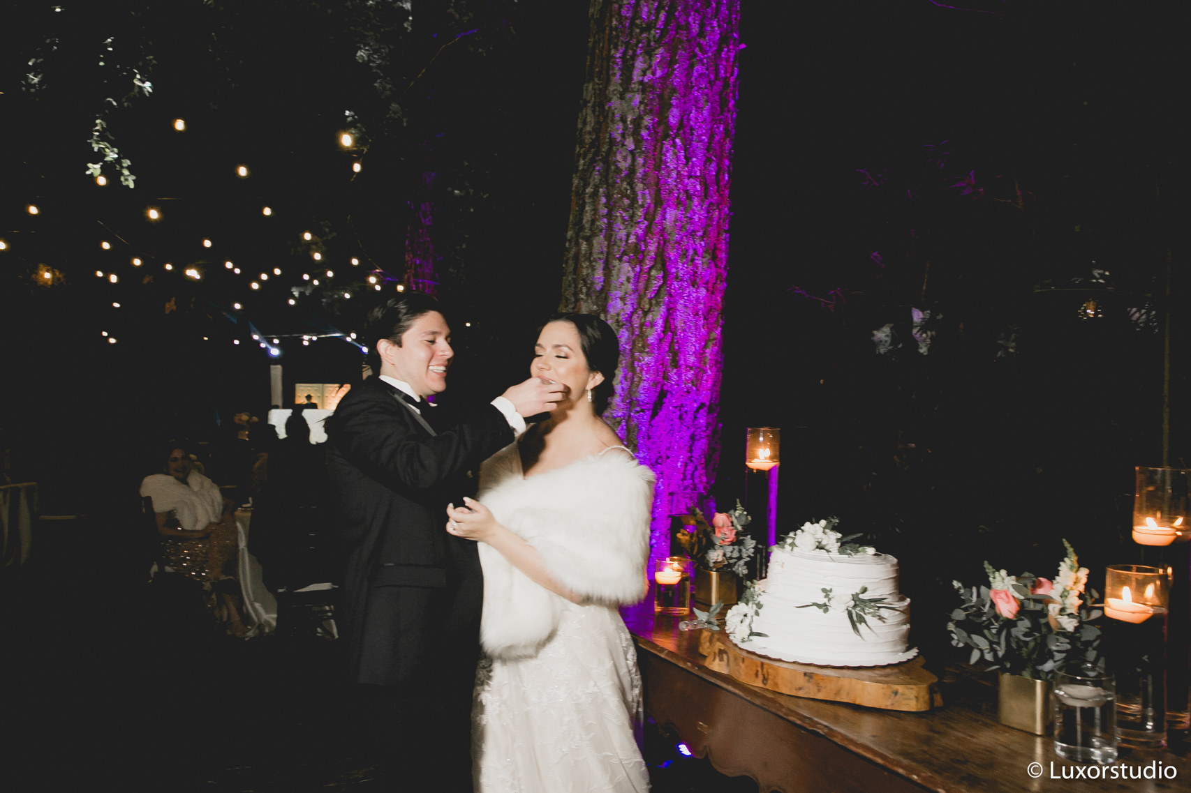 Siguió una recepción en el jardín donde se sirvió la cena en unas espectaculares mesas. Los árboles y las luces de arriba, decoraban el paisaje de la mesa, creando una combinación deslumbrante salpicada de luz de velas y cristalería moderna. Un destellar de flashes como si fueran paparazzis deslumbraron la entrada de los novios, fotógrafos corriendo para lograr el mejor ángulo, retratando la belleza de la pareja.