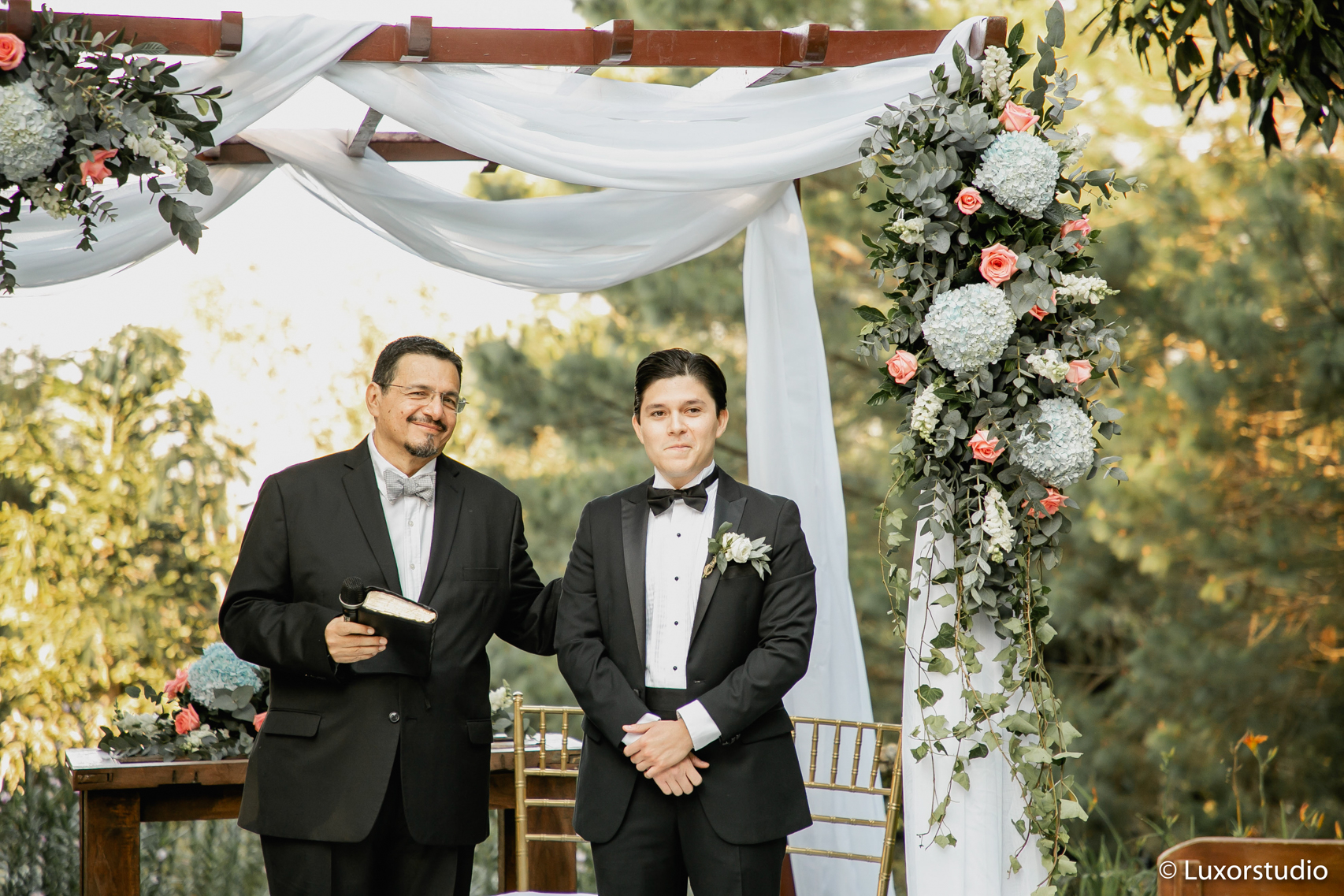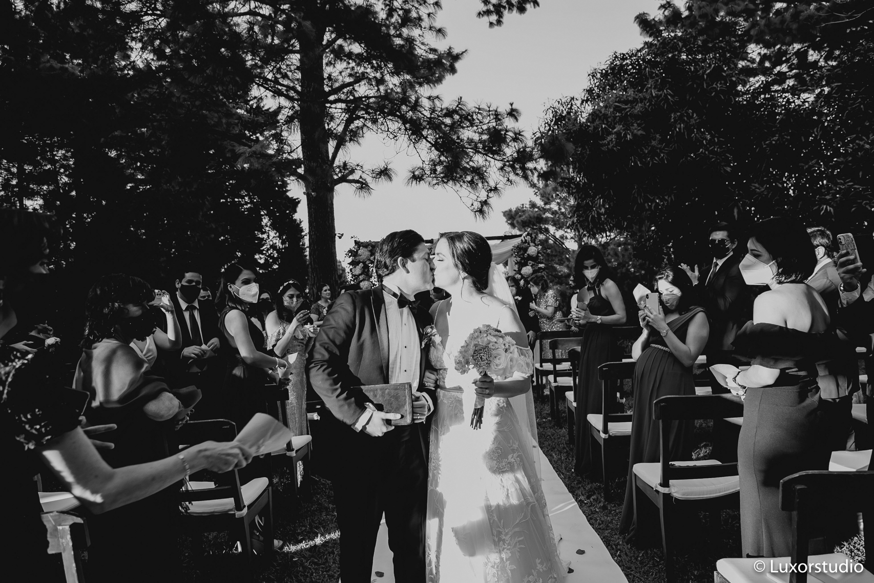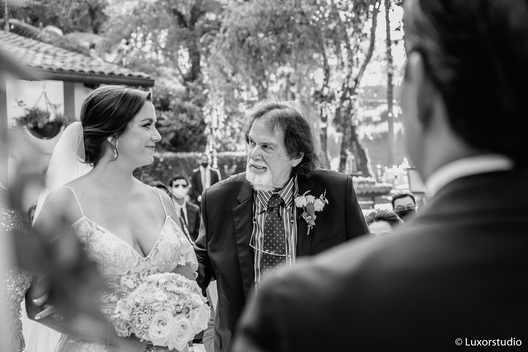 El amor envuelve a Cristine y Andres, Después de una ceremonia civil íntima compartida en su casa privada en las cercanías de los planes de Renderos, la pareja decidió casarse entre los jardines cubiertos por mucha naturaleza de Cajamarca. Complementando el entorno del lugar, la pareja intercambió votos ante un arco de vegetación y flores autóctonas.