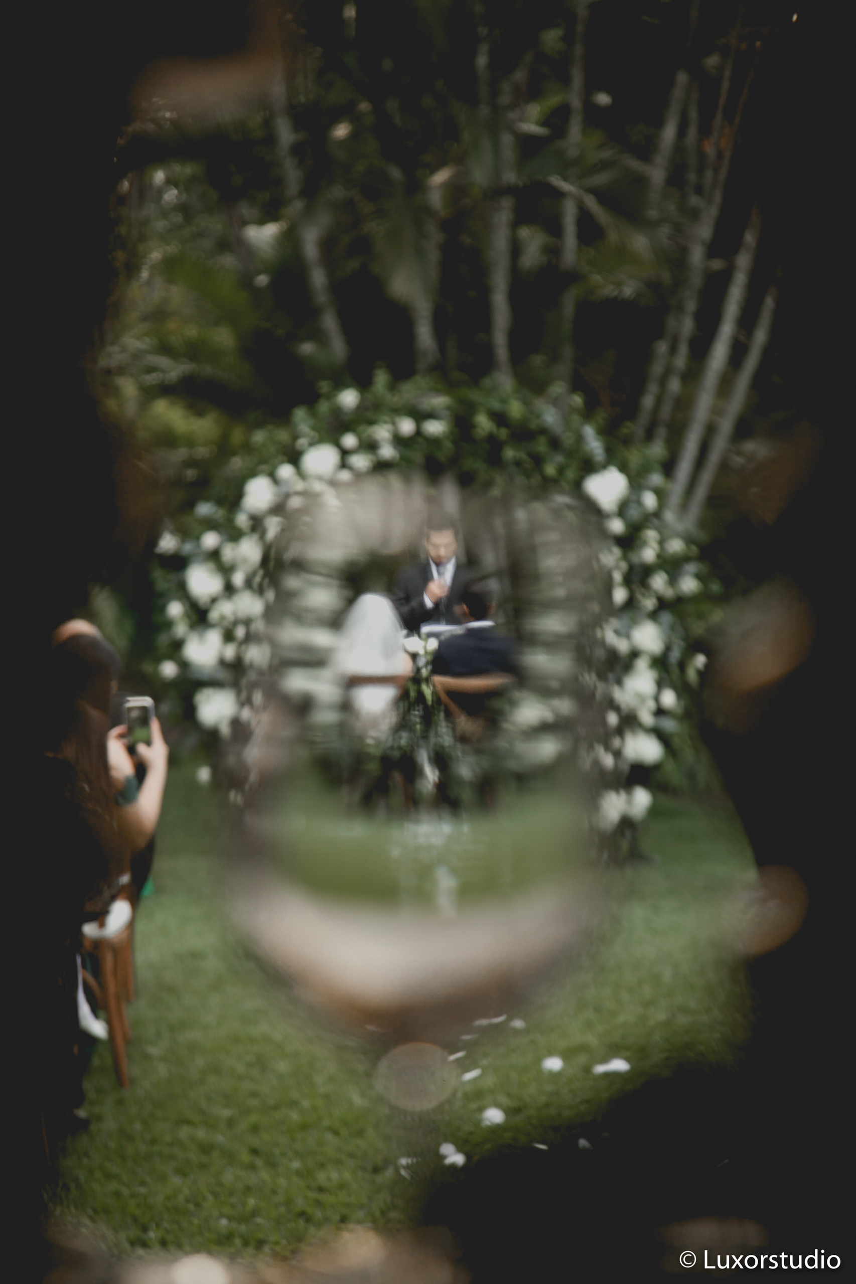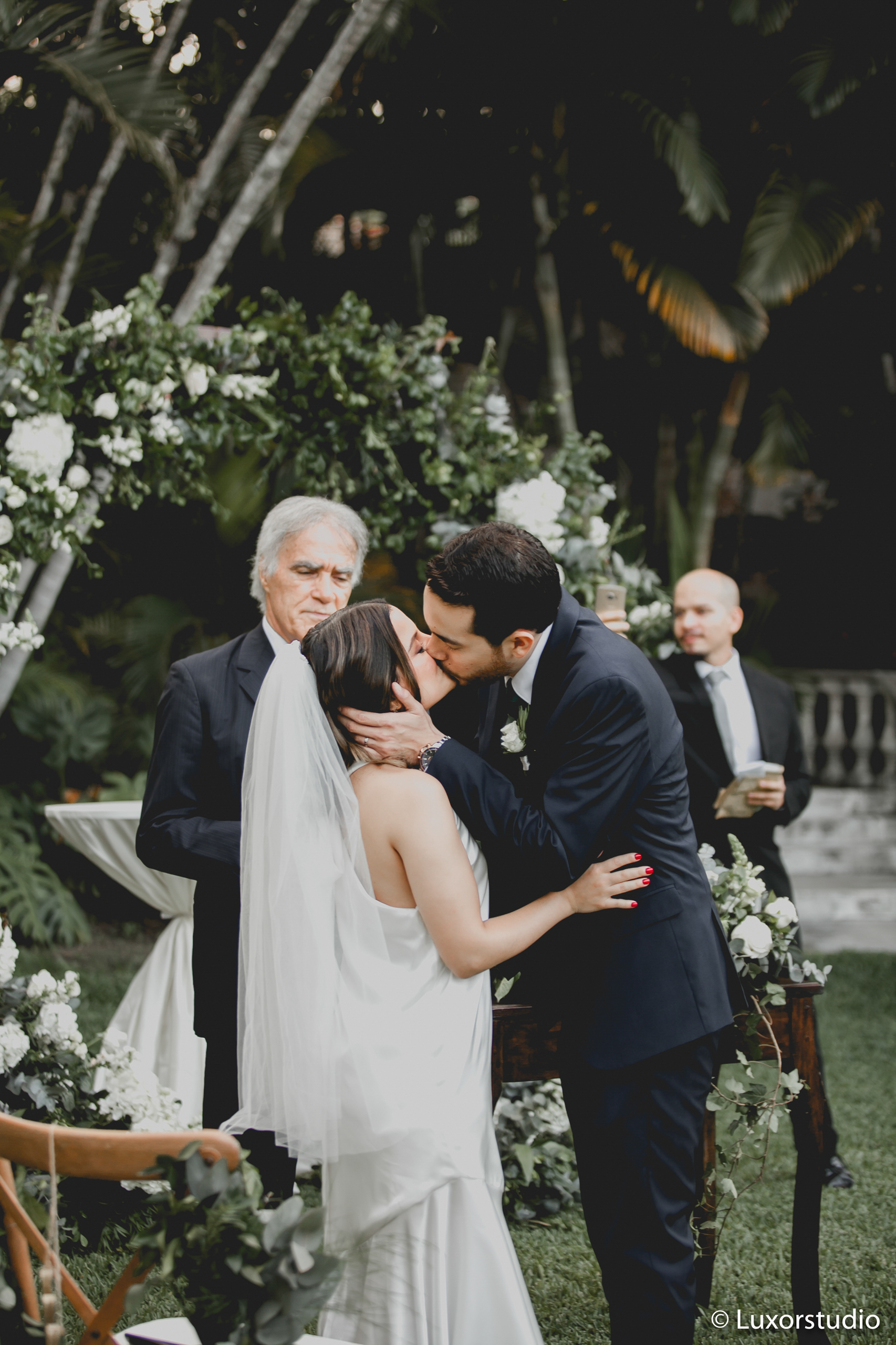 Pequeña, elegante y muy acogedora fue la ceremonia que con tanto anhelo esperaron los novios, antes de llegar al altar Claudia, muy entusiasmada y nerviosa, dijo “es mi día“, entre risas y emoción todos recordaban su historia de amor, principalmente el mejor amigo de Juan quien siempre tuvo la certeza que ellos terminarían como esposos, “siempre te lo dije y míranos hoy“dijo.. Claudia caminaba al altar con una montaña de sentimientos, Juan la esperaba con una sonrisa y sus ojos sosteniendo lágrimas, su mirada fija y directa hacia su futura esposa. Sin duda alguna un momento congelado en el tiempo, en las fotografías.