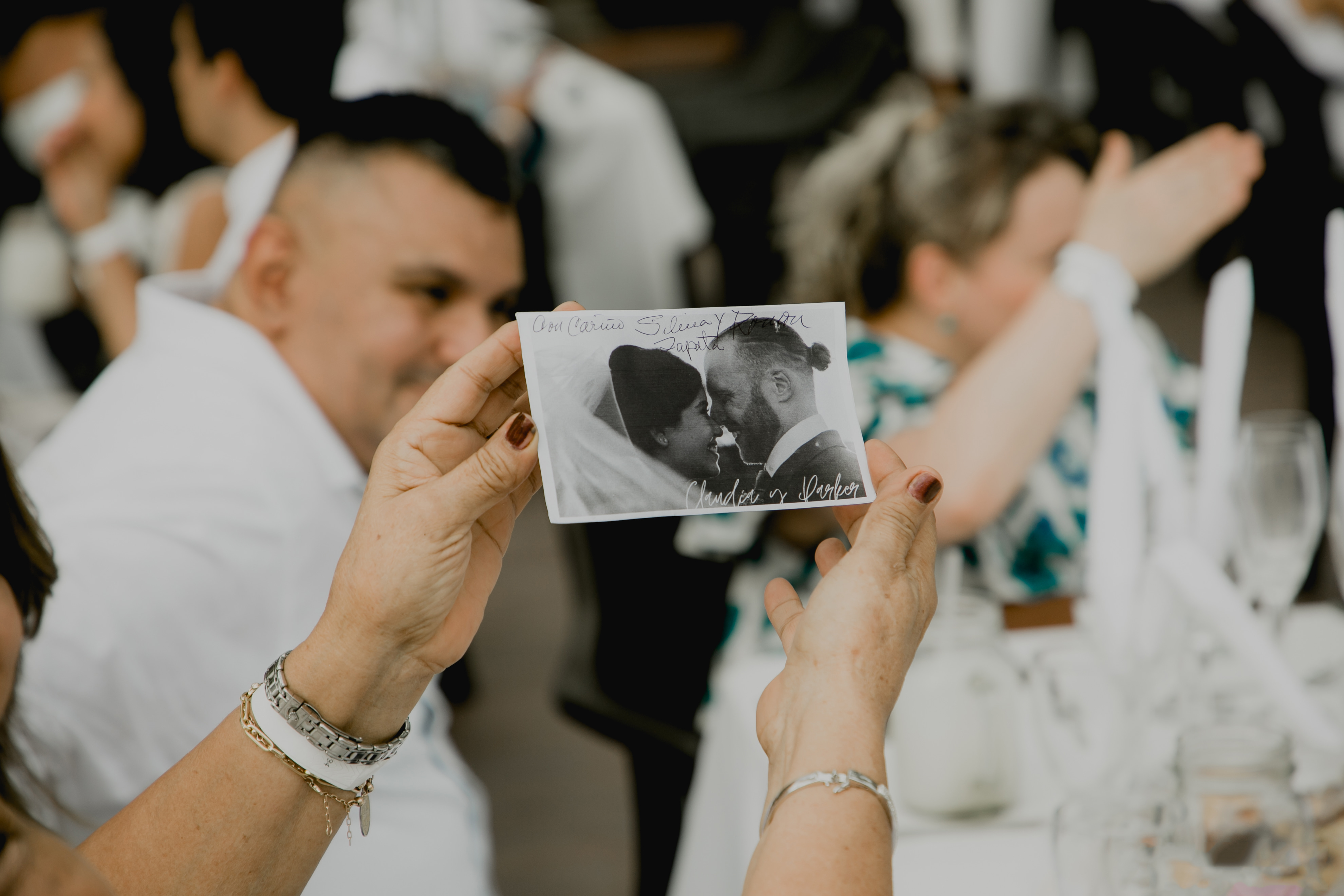 Claudia y Parker estaban emocionados de compartir juntos este importante instante en sus vidas con su familia y amigos, como desfile de modas, todos los invitados vestían de acuerdo al concepto de la boda en tonos blancos, beig y grices.