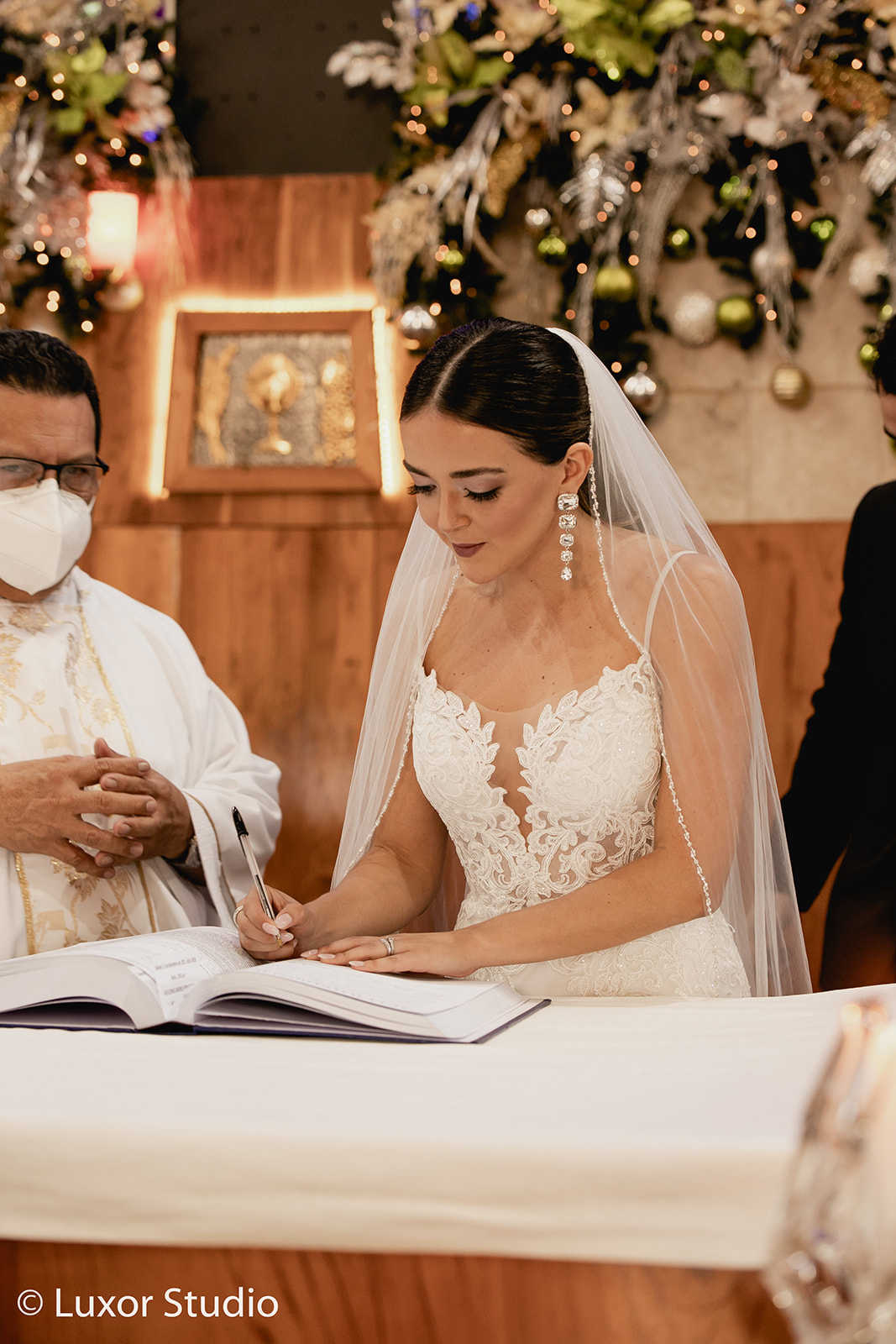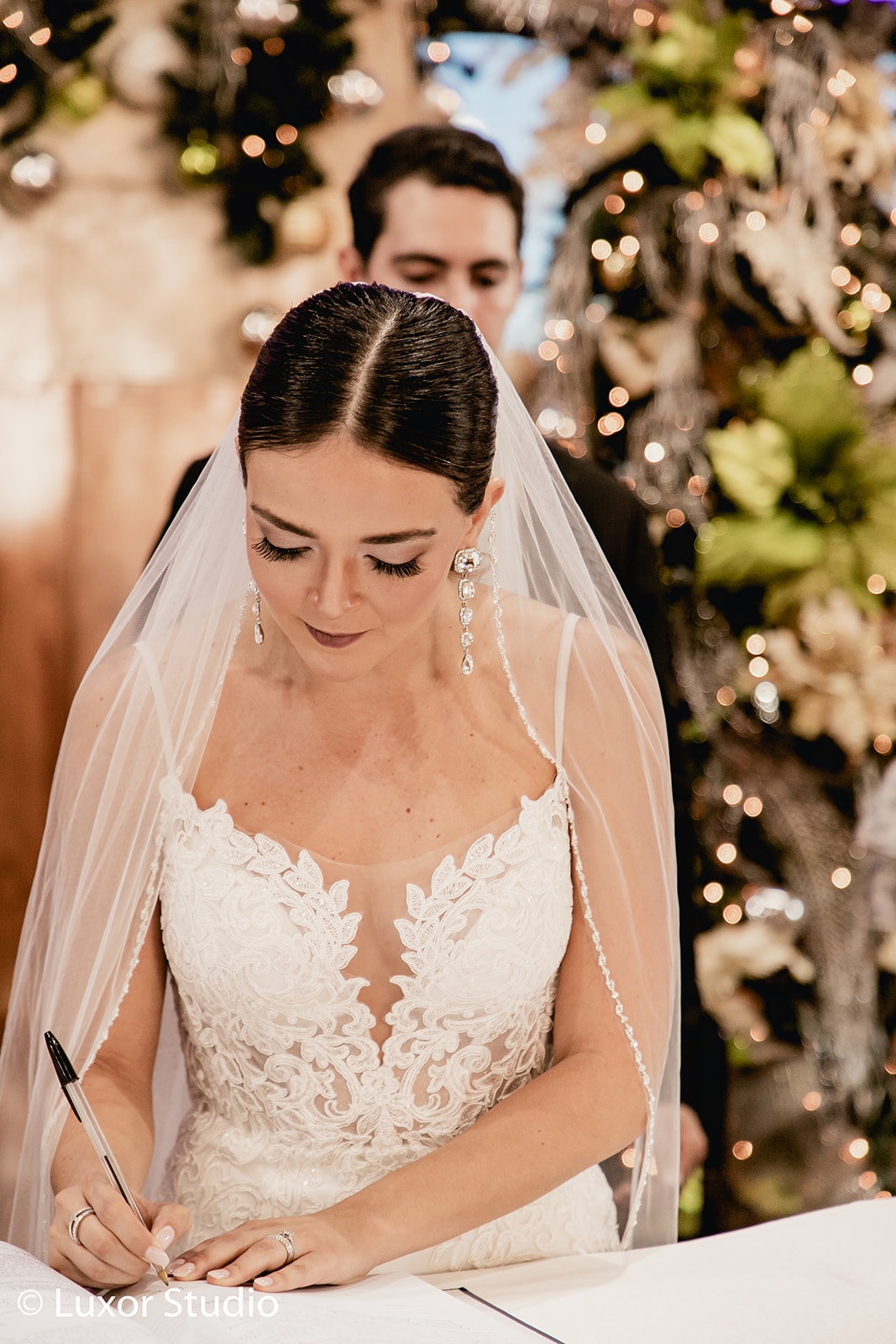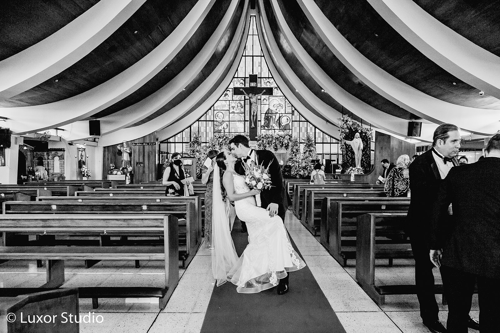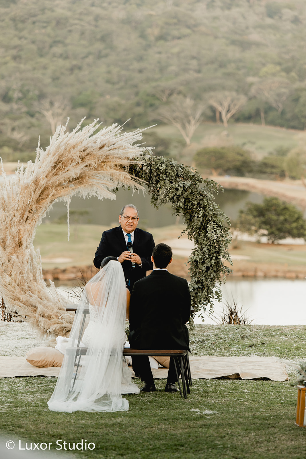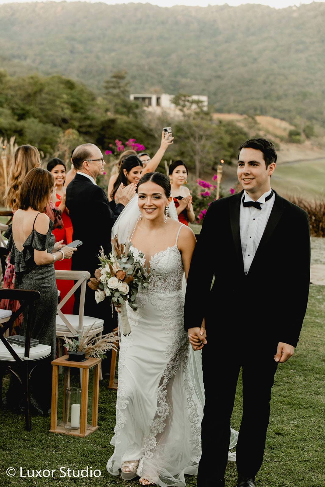 Una boda elegante y moderna, dos ceremonias, una ceremonia católica tradicional en una iglesia con vitrales coloridos en la ciudad de San Salvador. La segunda ceremonia íntima, una boda sentimental llena de follaje seco y flores exóticas exquisitamente decoradas en tonos de paisaje desértico, fue una colisión de belleza natural y opulencia.